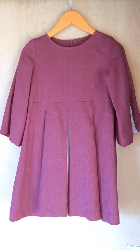 Дизайнерское льняное 2х цветное платье из 100% льна высокого качества. Прекрасное сочетание ягодного и серого цветов. Юбка и рукава клиньями, на рукавах вышивка цветов хризантемы. На 4-6 лет, ориентируйтесь на замеры. Длина 62см Рукав 37 Пот 34