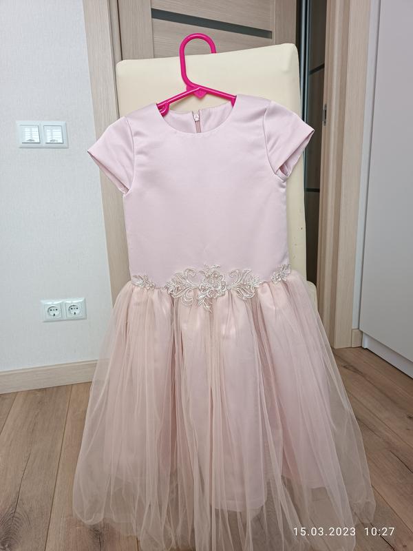 Ніжна святкова сукня на худеньку дівчинку, в ідеальному стані без плям, затяжок та потертостей. Індивідуальне пошиття, одягнена один раз. Підійде на ріст 122-128. Чудово підійде для святкових подій та на випускний у садочок.