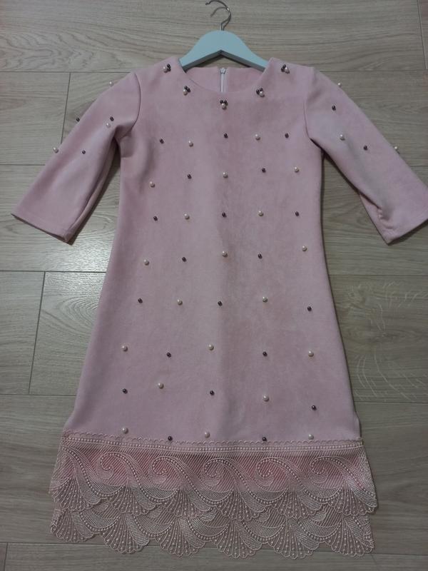 Платье замшовое пудрового цвета на 8-9 лет размер 134-146