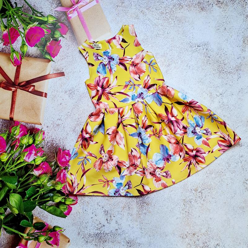 Очень яркое неопреновое платье в цветы держит красиво форму на 5 лет ширина 29см длина 60 см