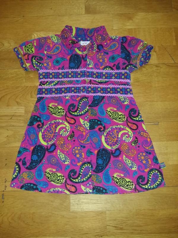 Яркое микровельветовое пышное платье ME TOO на модняшку 1,5-2 лет. Застежка впереди на пуговки до талии, как рубашка. Замеры: плечи- 25, грудь-29, талия-31, рукав - 11, длина по спинке-49. Состав: 100% хлопок