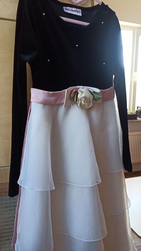 Изысканный бархатный лиф расшит перламы, многослойная легкая юбка, роза спокойного колора - создают идеальное платье для маленькой леди.