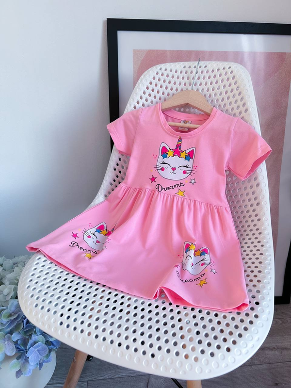Платье для девочки - Производитель Турция - Модель Милая киса - Размеры 3-4 года длина 50 см полуобхват груди 23 см 4-5 года длина 51 см полуобхват груди 24 см 5-6 лет длина 53 см полуобхват груди 26 см 6-7 лет длина 55 см полуобхват груди 27 см 7-8 лет длина 57 см полуобхват груди 28 см