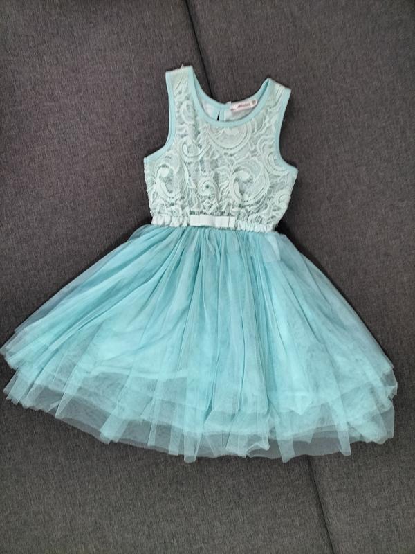 красивое стильное платье на девочку в очень хорошем состоянии. имеет незначительные следы ношения. размер по бирке 10. фактические замеры: подмышки 30,5см; пояс резинка 23см+ тянется до 33см; в плечах 24см; длина полностью по спине от плеча 72см; до пояса 31см.