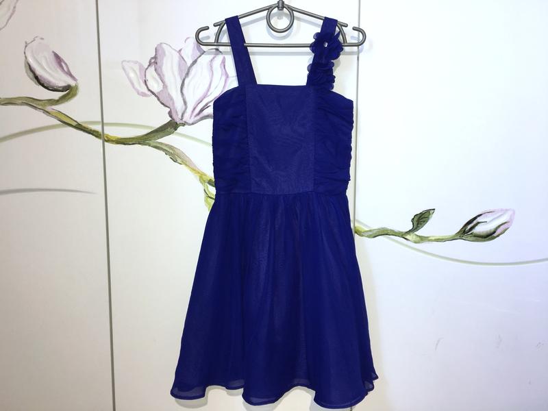 Нарядне святкове новорічне шифонове плаття сукня випускна модний сарафан синій з квітами Bluezoo для дівчинки 8 років ріст 128 Довжина - 71, ПОГ - 28, пояс - 27. 2 під*юбника Якісне, красиве у відмінному стані. На День народження, випускний чи на будь яке свято