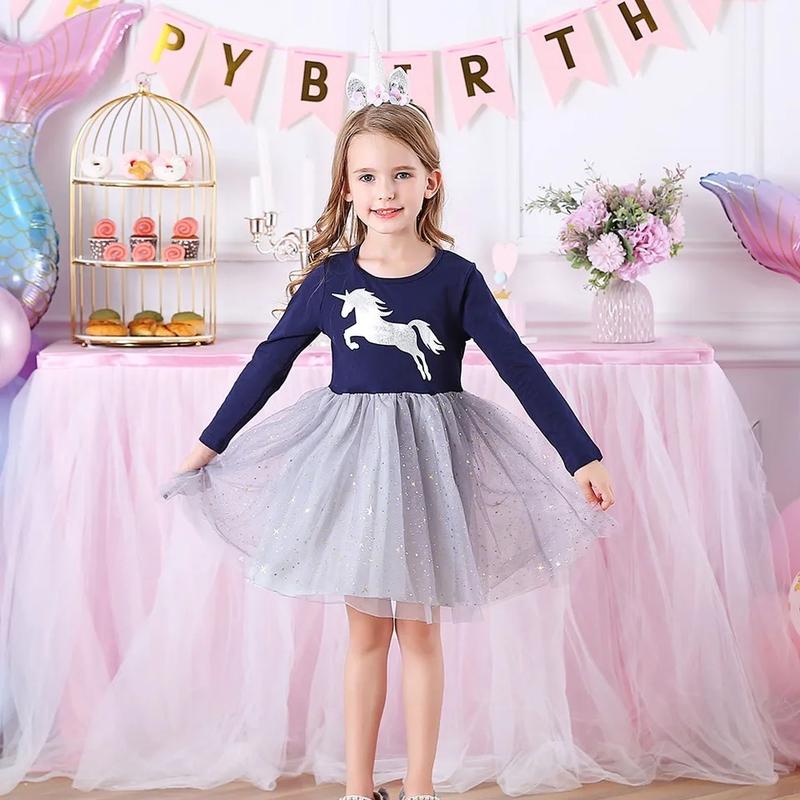 Праздничное платье для девушек с единорогом и пышной юбкой