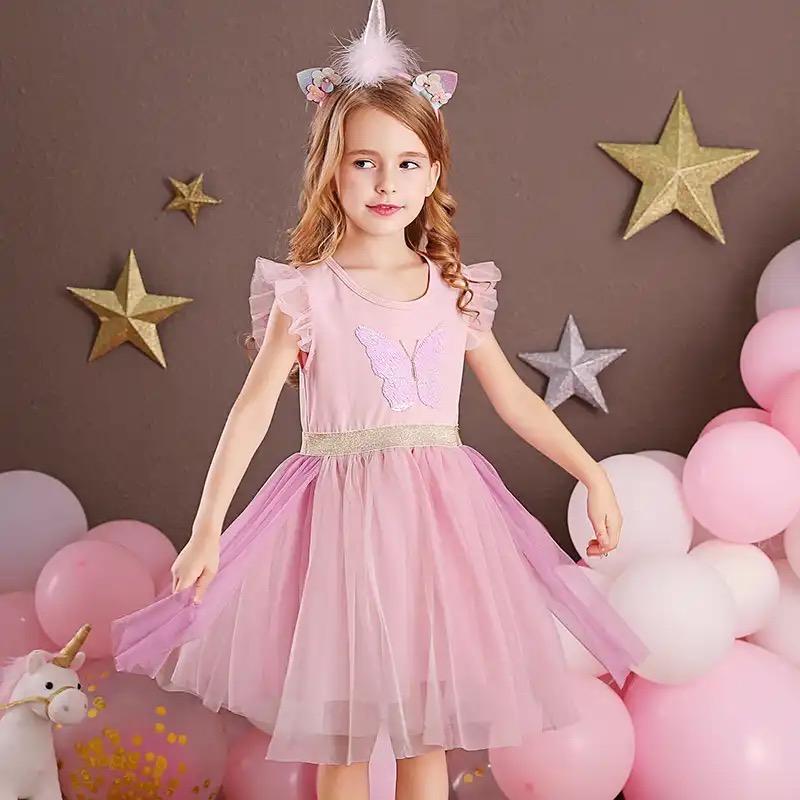 Летнее платье с бабочкой из пайеток и фатиновой юбкой