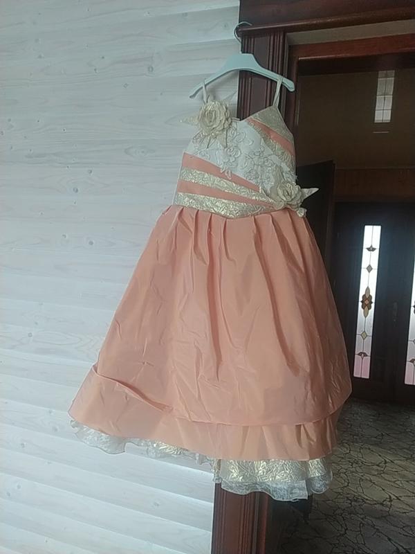 платье персикового цвета, длина от плеча 100см.