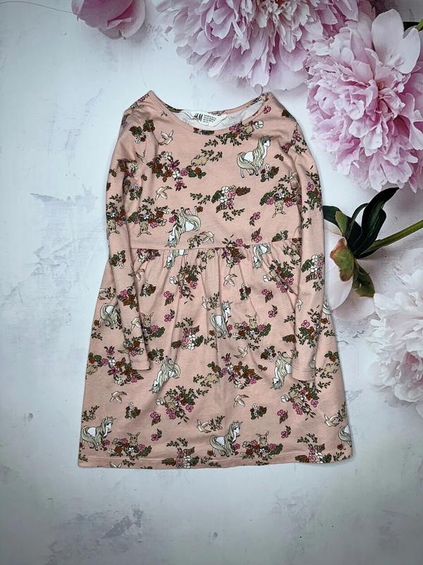 Котоновое платье с длинным рукавом Состояниях отличное 🏷️H&M 4-6 лет/110-116 Длина 57(22). ПОГ 31. Рукав 39