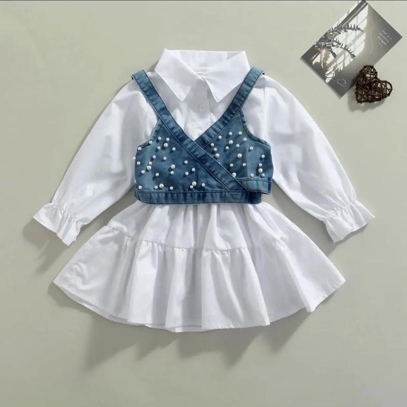 🦄 Весенняя новинка для девочек. Сукня рубашка+ джинсовий корсет. Платье белого цвета, в поясе резиночка, на пуговицах.Стильная и удобная модель. 🦄Размеры: 🦄Замеры: 80: Длина 43, пог25,рукав 30 см. 90: Длина 47, пог27,рукав 31см. 100: Длина 52, пог 29,рукав 33 см. 110: Длина 55, пог 31,рукав 35 см. 120;Длина 58, пог 32,рукав 37 см. Ориентация на замеры, маломерят. Допускается погрешность в 1 см