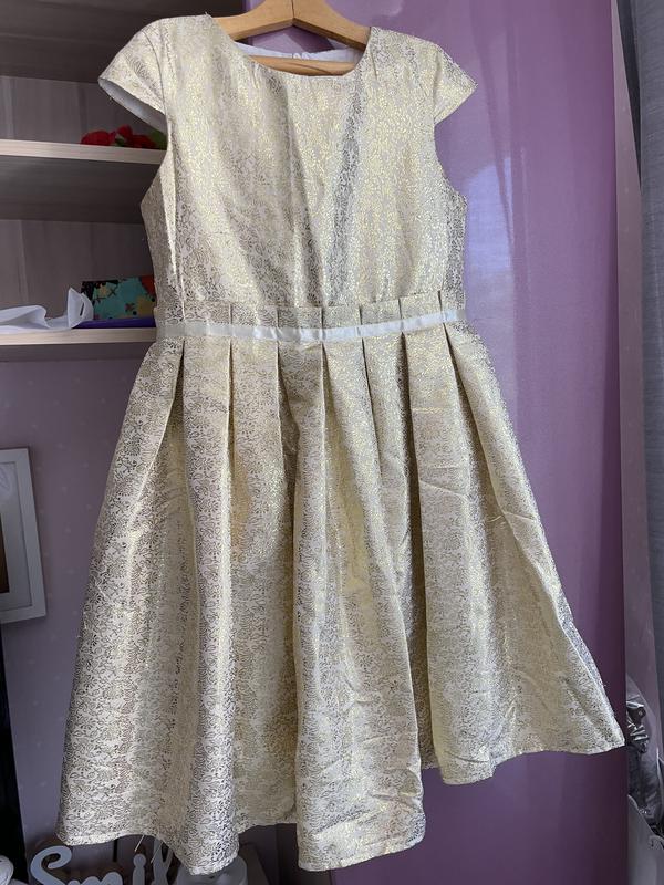 Платье для девочки очень красивое, праздничное, состояние новых, одети пару раз на праздники, никаких повреждений не имеет, размер 140 см.