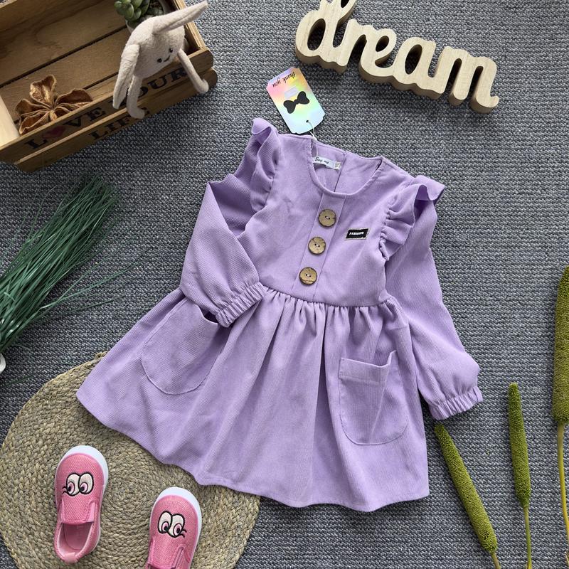 Яскрава та стильна сукня з королівського вельвету! Спереду – гарний рюш, дві кишені, рукави – волани. Сзаду- блискавка. Розміри: 98 – рукав 36, довжина 49, півобхват 27 104 -38/53/28 110 – 41/55/29 116 – 43/58/30