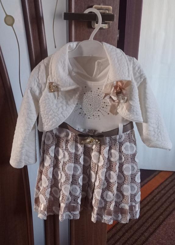 Платье на короткий рукав с накидкой, брошью и ремнем. Будет хорошо до 2 лет и более. Длина платья-46,5 см Длина рукава накидки - 28,5 см Стан - идеальный **********