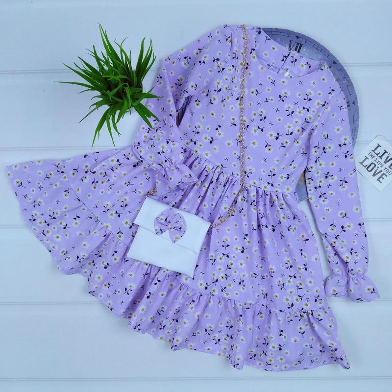Великолепное воздушное платье 💐💐💐💐💐💐💐💐 Пышная юбка, в рукавах небольшая резиночка,позади есть маленькая пуговица,гарным дополнением является сумочка, которая идет в комплекте ✨😍✨😍✨ Тканина: Софт 💞 Производитель : Украина 🇺🇦 р.104-2шт р.110-2шт р.116-2шт р.122-2шт р.128-2шт ЗАМІРИ +/-1-2см!!! ▪р.104 длина 58 см/рукав от плечевого шва 38см /ПОГ 27см ▪р.110 длина 62 см/рукав от плечевого шва 40см /ПОГ 30см ▪р.116 длина 65 см/рукав от плечевого шва 41см /ПОГ 30см ▪р.122 длина 67 см/рукав от плечевого шва 43см /ПОГ 31см ▪р.128 длина 68 см/рукав от плечевого шва 44см /ПОГ 32см