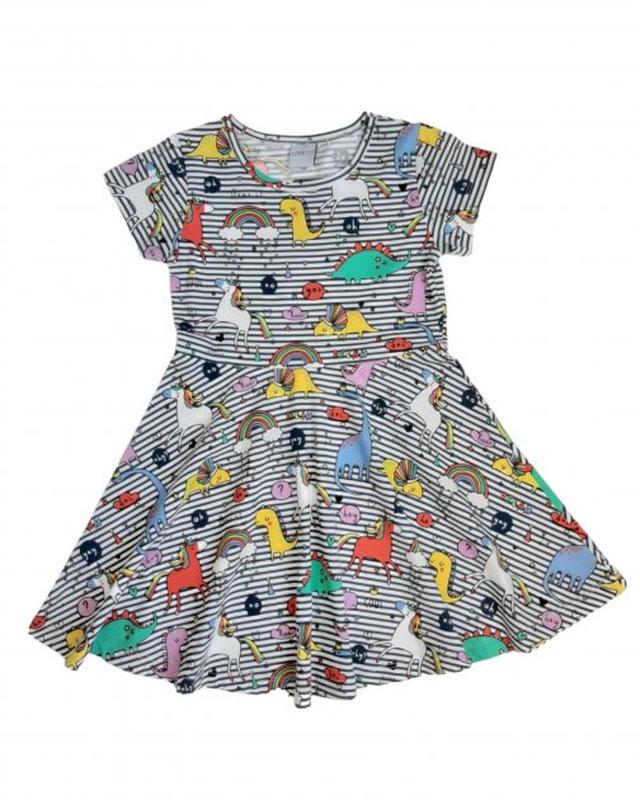 Трикотажное платье для девочки полоска,единороги lovetti турция 591187-380