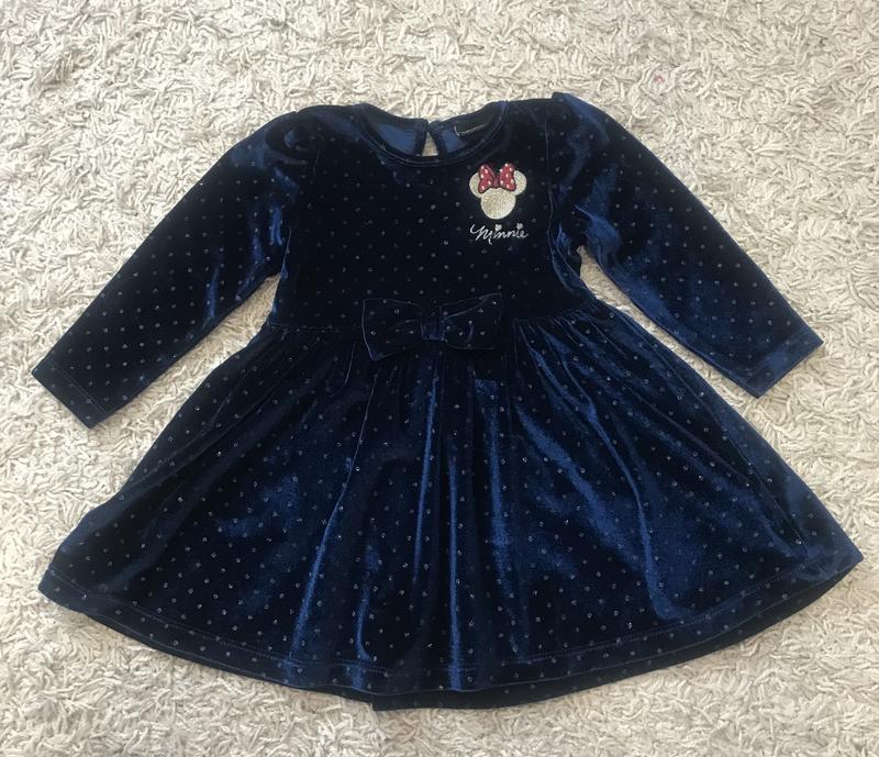 Платье из велюра с люрексом, с бантом и золотой вышивкой Минни Мауса. В идеальном состоянии. Все замеры на фото)