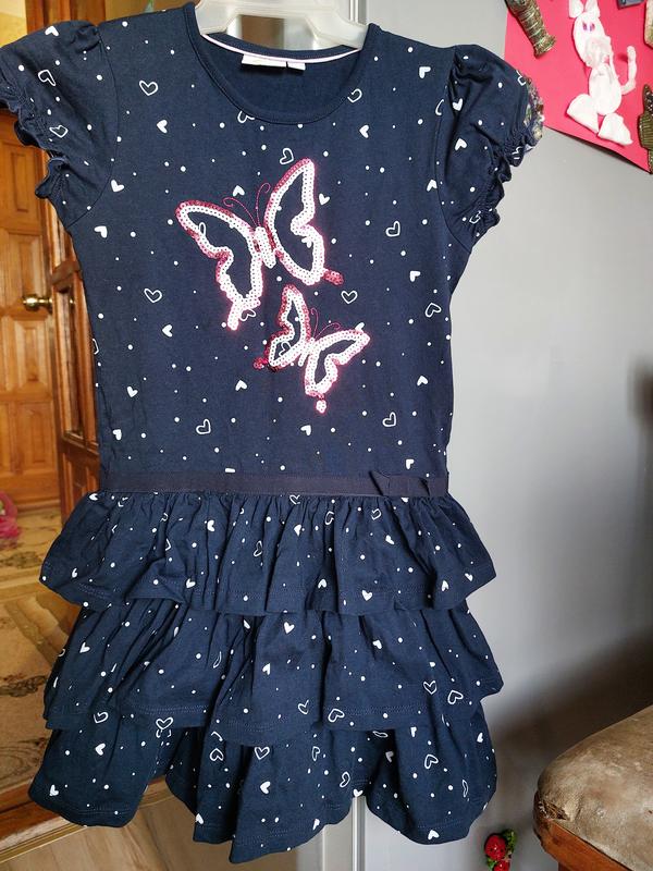 красивое трикотажное платье девочке в отличном состоянии на рост 134см, длина 67см, ширина 34см, плечи 27,5см