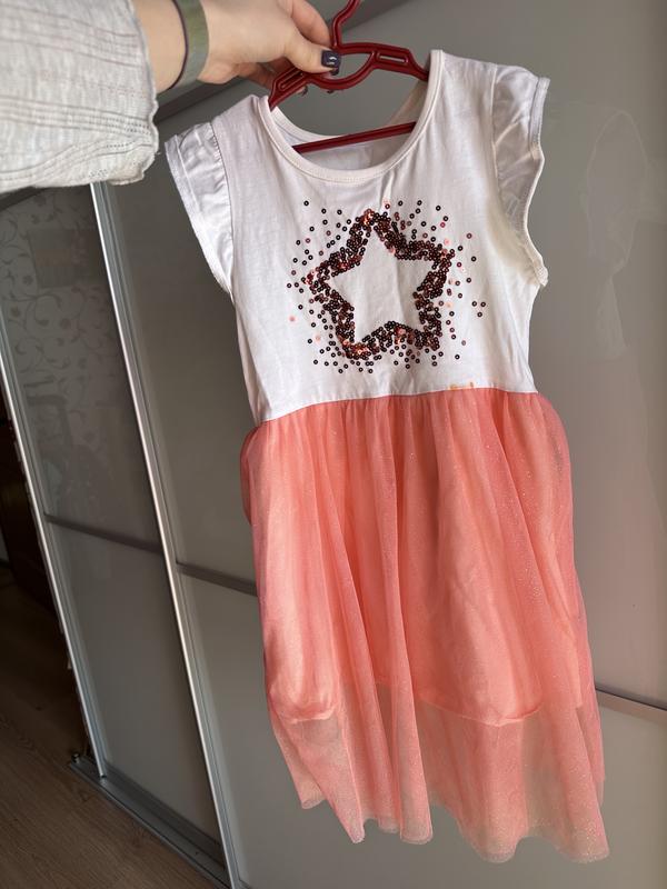 Продам платье размер 128 см Состояние хорошее. Есть малозаметное пятнышко от краски в раене пояса (возможно отстирается) 100 грн