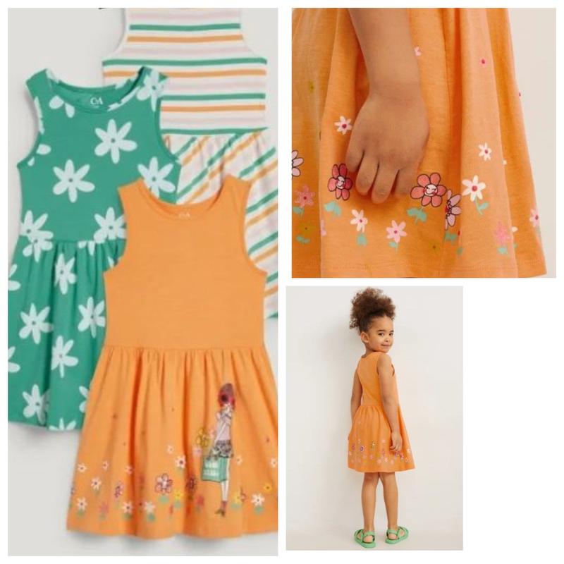Трикотажна сукня для дівчинки. З рукавчиком-майкою. Прикрашена принтом. Склад: 100% бавовна. Розмір, см Довжина, см Ширина під руками, см 92 49 30 98 52 31 104 55 32 110 58 33 116 62 34 122 65 35 128 69 36 134 73 37,5 140 77 39
