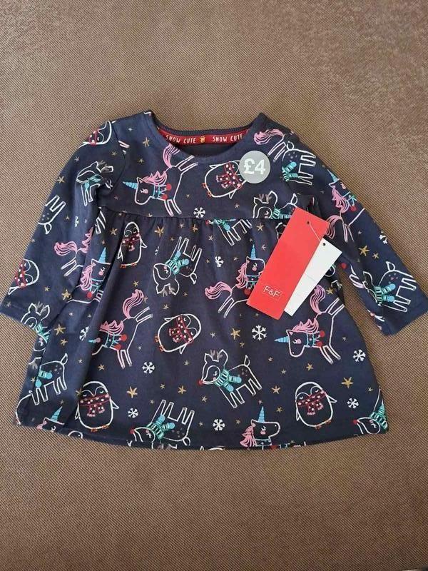 Платье на девочку 3 - 6 мес. F&F. Длинный рукавчик. Состояние: новое. Состав: 96% хлопок, 4% эластан. На рост 68 см.
