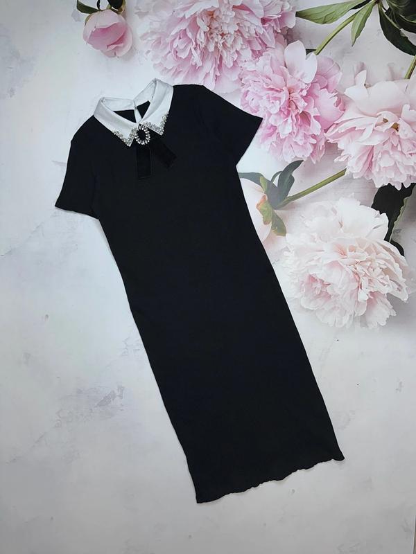 Длинное платье с воротником Ткань рубчик, хорошо тянется Ворот украшен кристаллами и бусинками Состояние идеальное 🏷️River Island 11-12 лет/152 Длина 91. ПОГ 35+