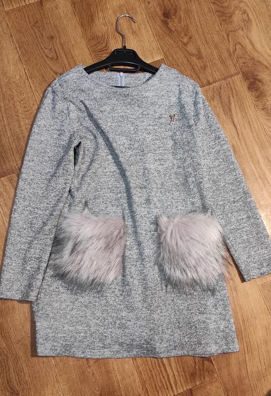 красивое стильное платьице на 146 рост, длина по спинке: 65 см, рукав 50 см, пог 43-44 см. небольшие пятнышки сзади, есть ШАФА доставка
