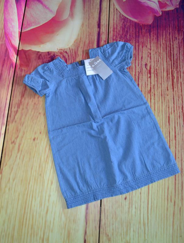 Літня сукня, вільного крою. Рукави на резиночках. Тканина не тягнеться. Позаду блискавка. р.116 ширина п/о – 39,5 см (під руками) по плечах - 26 см низ п/о - 46 см довжина - 64 см (від плеча) Склад: 100% бавовна