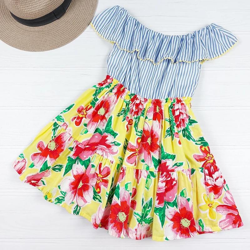 Платьице от Monsoon 6 лет, 116 см. ▪️идеальнейшее состояние ▪️ткань топа вискоза ▪️ткань юбки и подкладка котон ▪️произв. Индия Резинка вверху 30, хорошо тянется Пог 32 Пояс 26 тянется Длина топа 20 Общая длина 53