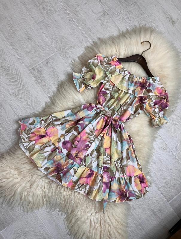Арт 2501 Хит сезона!! Воздушное платье для принцессы, тканина супер софт в талии под резинку и поясок верх и рукавчик также под резинку на плечиках есть завязки Размер/длина по середине/пог похибка+-2см 140/67/41-2шт 146/70/43-2шт Тан