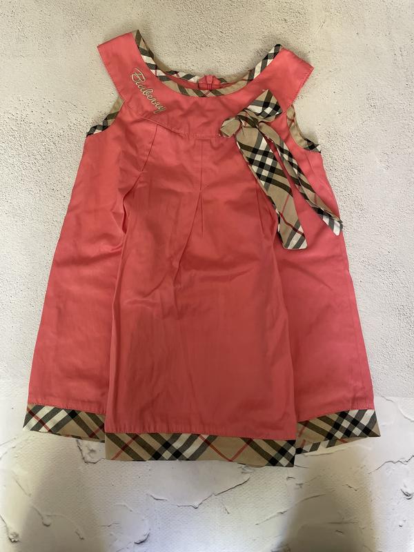 Оригінал, 100% котон. Попереду вишитий логотип Burberry та бант у фірмову клітку бренду. Стан ідеал але на спинці трохи потертий замок (дивіться фото).
