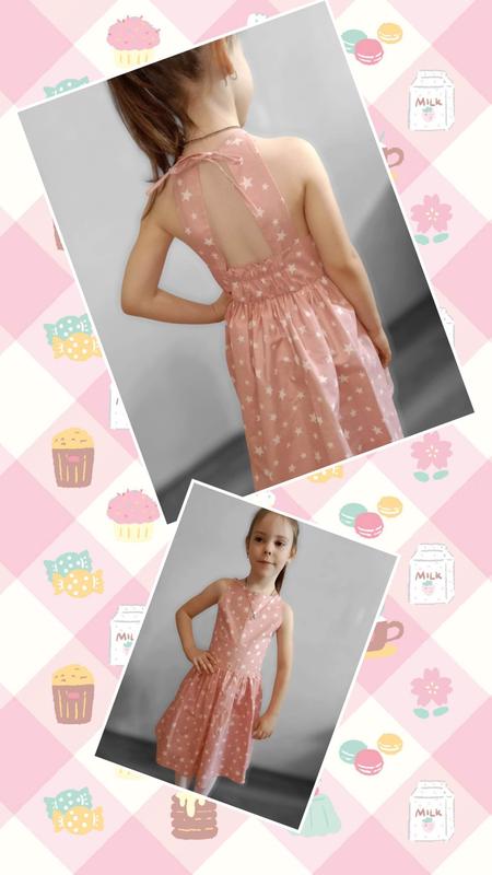 платье на возраст 6-9р, по спинке идет резинка, из натуральной ткани хлопок. очень легкая и приятная к телу ткань, на жаркое лето идеальный вариант