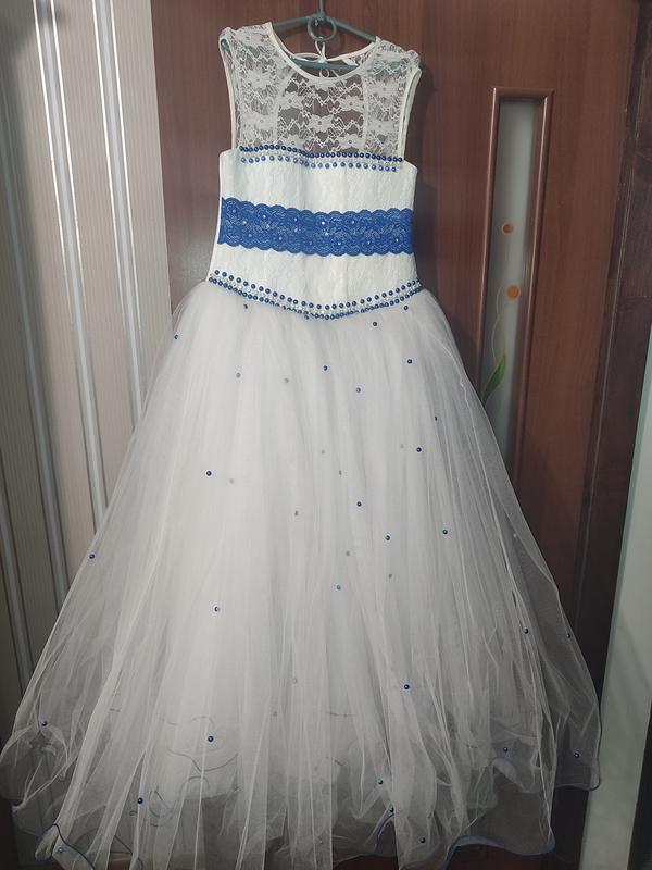 Пышное платье для девочки. Длина всего платья 128 см.позада имеет завязки для регулировки