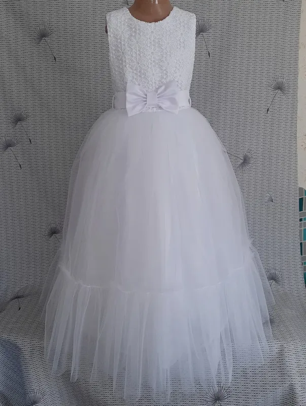 Нарядное фатиновое детское платье на подкладке из батиста. Верх платья: спереди – прокатный атлас и гипюр, а спинка – только атлас. Низ – атлас и фатин. Платье украшено съемным поясом с бантом. Застежка – потайная молния. P.s. На фото, где платье более пышное, – там юбка на кругах (круги можно купить дополнительно) Размеры: 116, 122, 128, 134, 140. ЗАМЕРЫ ГОТОВОГО ВЫРОБУ: (погрешность может составлять ± 1 см.) Размер 116 Обхват платья по линии груди - 62 см. Длина от середины плеча до низа платья - 94 см. Размер 122 Обхват платья по линии груди – 64 см. Длина от середины плеча до низа платья - 99 см. Размер 128 Обхват платья по линии груди – 66 см. Длина от середины плеча до низа платья - 104 см. Размер 134 Обхват платья по линии груди – 68 см. Длина от середины плеча до низа платья - 110 см. Размер 140 Обхват платья по линии груди – 70 см. Длина от середины плеча до низа платья - 115 см. (Если вдруг длина платья Вам не подходит – можем сшить дольше или короче.)