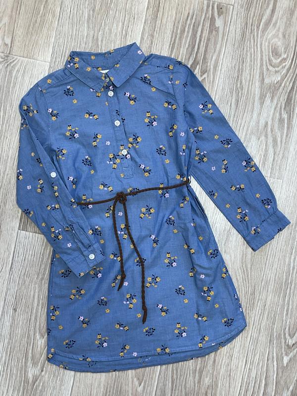 Котонове плаття Рукавчик підвертається Поясок плетінка Є 2 бічні кишені Стан ідеальний 🏷️H&M 5-6 лет/116 Довжина 60/63. ПОГ 35. Рукав 40-47