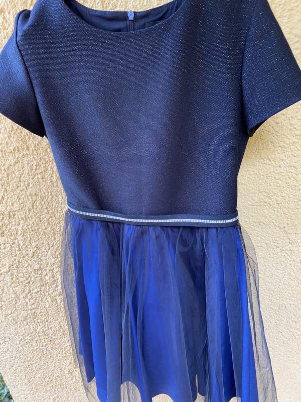 Платье темно синее с фатином на рост 152) Была одета 1 раз