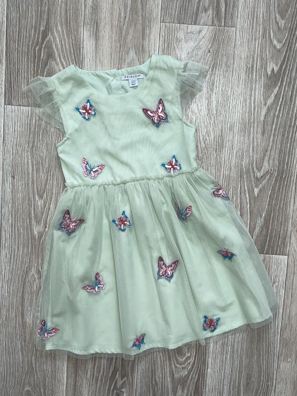 Платье мятного цвета с бабочками Подкладочная ткань полиестер Состояние отличное 🏷️PRIMARK 7-8 лет/128 Длина 66(26). ПОГ 33