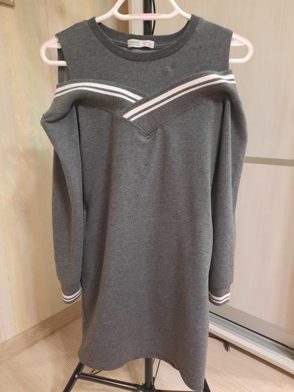 Повседневное платье в спортивном стиле. На плечиках разрезы, по бокам карманчики. ПОГ 38см. ПОТ 36 см Рукав от разреза 50 см Длина 72