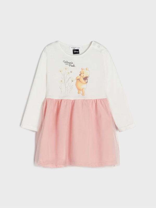 Платье Sinsay Изготовлен из хлопковой ткани. круглый вырез, застежка на плече длинные рукава рюши на талии на юбке легкая сеточка Принт Винни Пух ©Дисней Размер: EUR 92/ UK 1.5-2 Y EUR 98/ UK 2-3 Y Цена 270 грн