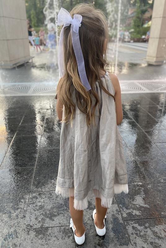 Святкова сукня Andre Tan, в новому стані, одягнута один раз на декілька годин. Розмір 122/128, краще брати на 116/122, на 5 рочків, довжина 57 см. Склад 45% льон, 45% віскоза, 5% шовк, 5% поліест, має перламутровий відлив, дуже ніжна , легенька тканина.