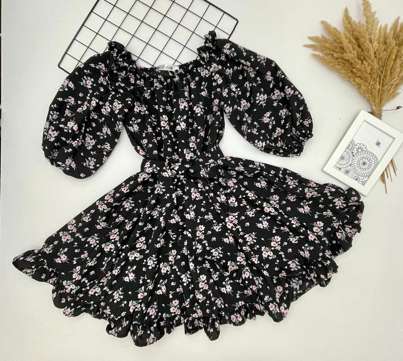 арт 2645 Весняна сукня для красунь в цветочный принт по талии под резиночку и поясок рукавчик лизариком рукавчик и верх также под резинку Тканина супер софт рост/длина/пог/рукав полная длина похибка+-2см 140/74/42/38-2шт