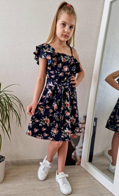 Легкий литний сарафанчик на одно плечо Ткань софт премиум класса поясок в комплекті Рекомендую 134(2 шт)-длина 68, пог 33 140(2 шт)-длина 75, пог 34 146(1 шт)-длина 81,пог 36 152(2 шт)-длина 84,пог 37 158(2 шт)-длина 90, пог 38