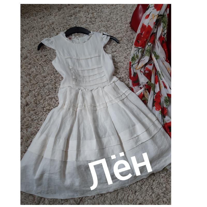 Шикарное белое /молочное льняное нарядное платье с пушистой юбкой , с подьюбником из фатина. Состояние новой вещи. Размер указан на 8 лет, ориентир на замеры Замеры плечи 27 ПОГ 33 ПОТ 30 Длинна 80 Длинна от верхней точки плечевого шва и до талии 31 см