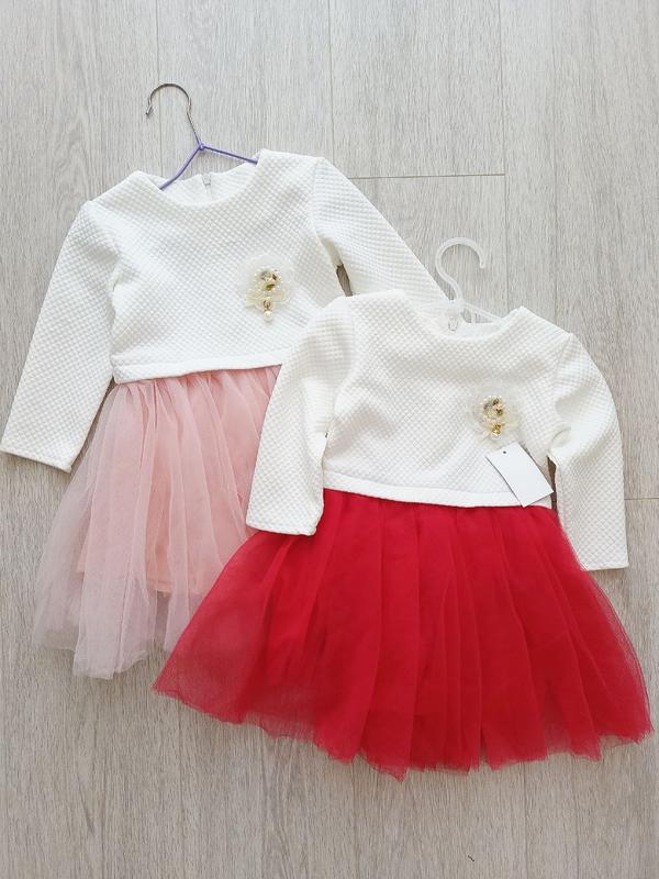 Нарядне плаття Україна рукав 3/4 ! зверху трикожаж 3д знизу : фатін 2 слоя+ підкладка брошка знімається розміри : 92,98 ціна 359 грн Заміри : 92 червоне низ: довжина рукава від шва плеча ( рукав 3/4) - 27 см , довжина плаття по фатіну від шва плеча- 48,5 см, ширина між ручками-29 см 98 персик низ: довжина рукава від шва плеча ( рукав 3/4) -28 см , довжина плаття по фатіну від шва плеча-50,5 см, ширина між ручками-29,5 см