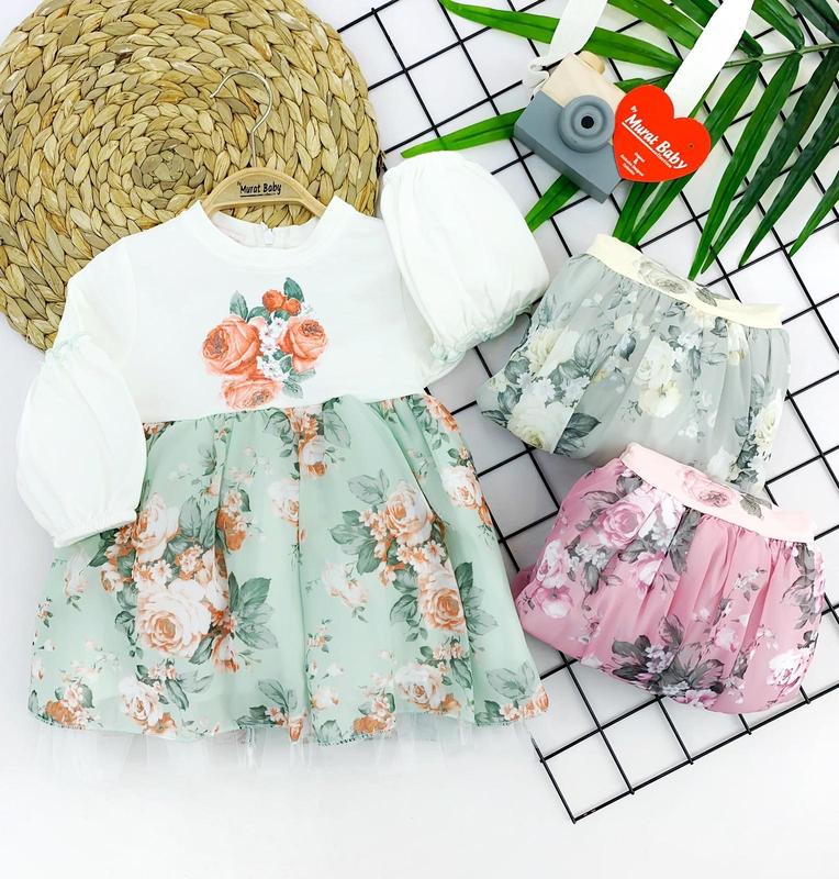 Красивое платье для девочек с длинным рукавом. Цветочный принт. Ткань верх двунитка, низ шифон + подкладка. Производитель Турция 🇹🇷 Размер: 2р-92 3р-98 см 4р -104 см 5р -110 см Цвет: серый, розовый, белый