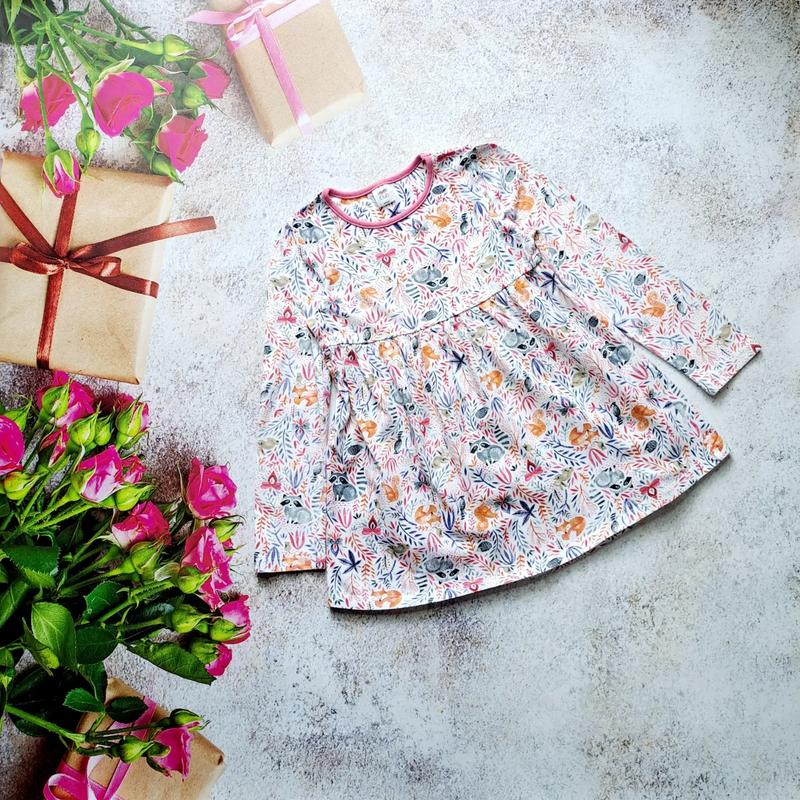 Трикотажное платье с зверушками на 4-5 года Шир 29 Длж 47 Состояние идеал