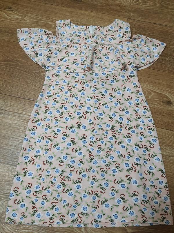 Летнее легкое платье с открытыми плечами. Тканина - софт. По спинке - маленькая молния. Длина платья - 65 см Полуобхват талии - 32 см