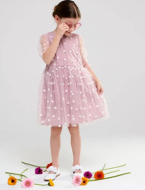 расклешенный крой длина меди кругла горловина сзади застежка на пуговицу короткие рукава декоративна вишивка цветочный узор