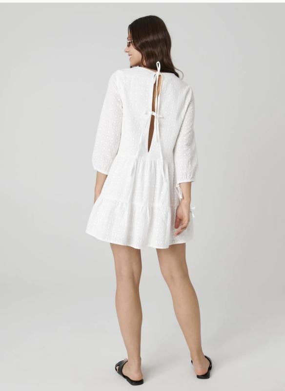 Плаття ярусами нове.тканина прошва (вишивка та вибитий малюнок).розмір XXS, але підійде на XS можливо S (дивіться заміри). Підійде невисокій худі дівчині або підлітку на зріст приблизно 150 до 160 см.довжина 74-75 см, трій від плеча 45 см, плеча 34-35 см, грудей 44 см.верх 100 відсотків лихопок, підкладка бавовна з поліестером по спинці зав'язки, можна щільно зав'язати, можна вільніше. на горловині трохи вимащено тональним тлі пудрою в магазині. Дивіться інші свої оголошення.