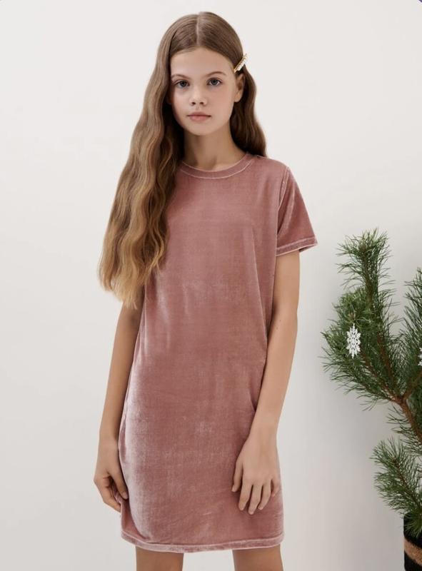 Велюрова платье Состав: 97 полиэстер, 3 эластан Размер 152 Длина збоку 72 см Длина рукава от плеча 15,5 см Плечи 30 см ПОГ 39 см Погрешность 1 см