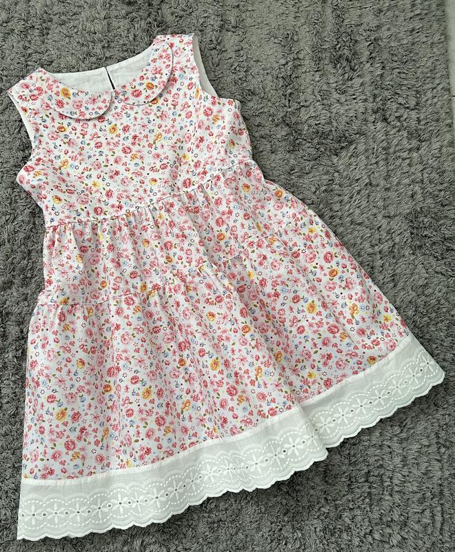 Ніжна сукня на дівчинку 5-6 років (100% бавовна) Довжина сукні -63см, пош - 35см, зверху до спідниці -24см, довжина спідниці - 39см, по плечах - 28см, плече - 6 см.